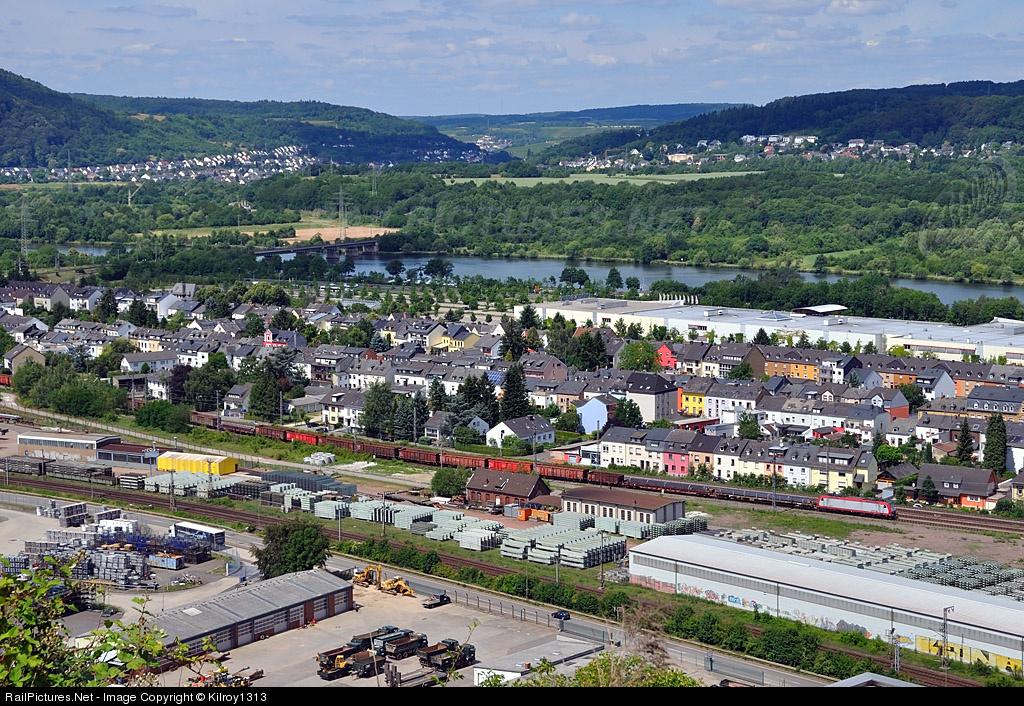 CFL mixed freight train passes Konz towards Trier.