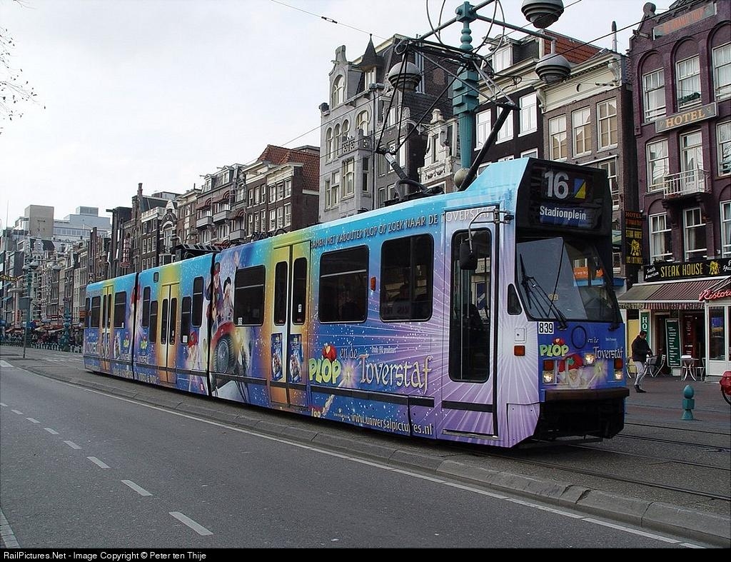 | This is a special livery to promote the DVD of childrens movie "Plop de Kabouter" (midget). The other side of the tram has another movie add. |