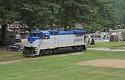 Still in need of lettering and logos, the freshly painted power for the latest Iowa Pacific venture rests just north of the Saratoga Amtrak station. The Saratoga and North Creek is scheduled to start service July 23rd on the ex D&H Adirondack Branch between Saratoga and North Creek. This unit was originally LMX 8524.