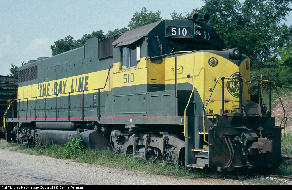 Atlanta & Saint Andrews Bay GP38-2 #510 was built June 1975 and later became Bay Line (BAYL) #510