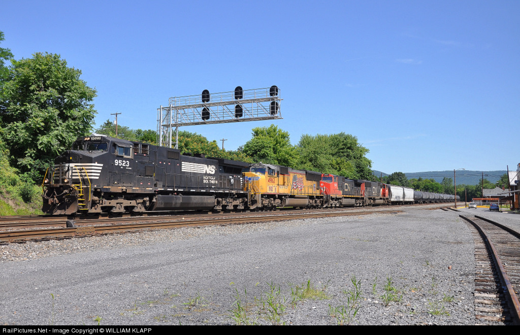 | Eastbound with a NS , UP, CN , CN , engines on train.