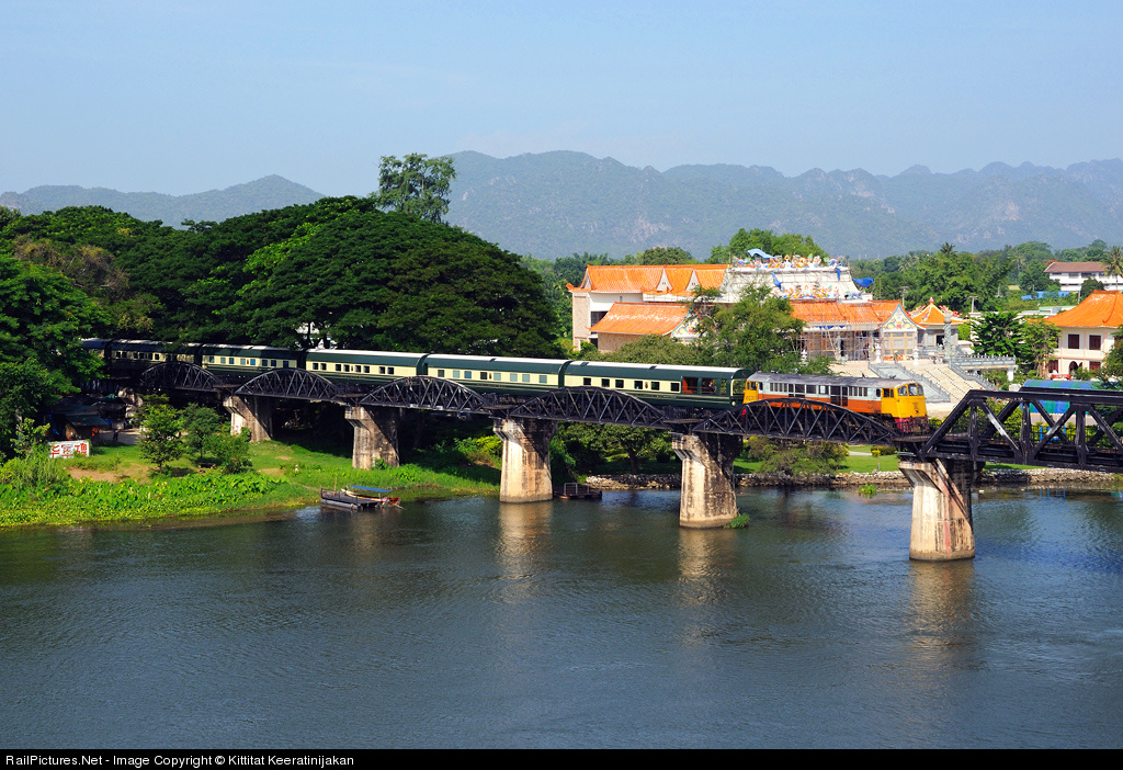 | The Eastern and Oriental Express from Bangkok to Singapore, while crossing the bridge over the River Kwai, a part of the famous "Death Railway" linking Thailand and Burma. |