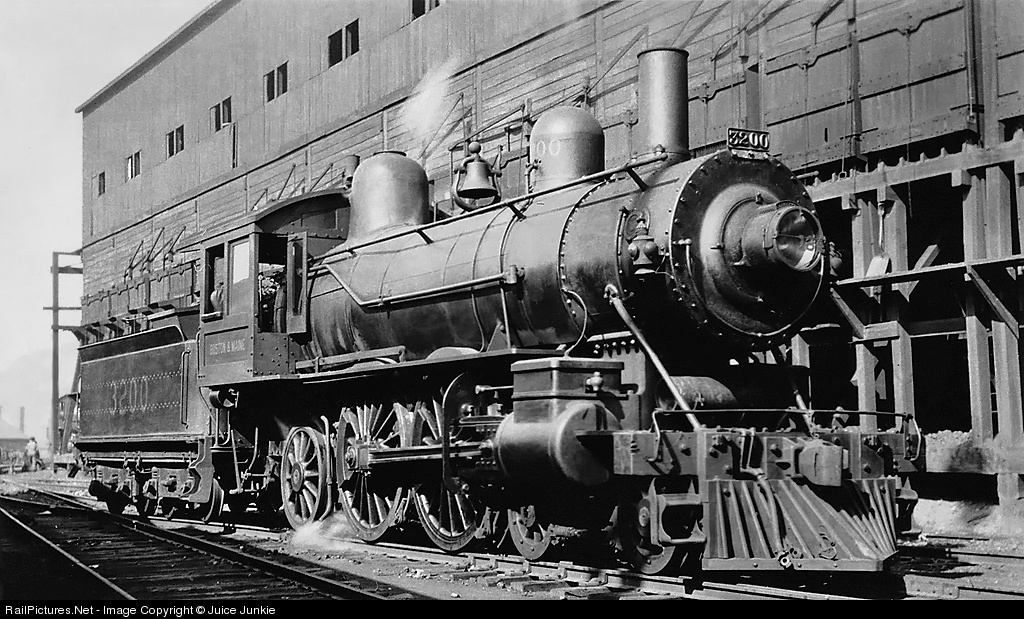 Boston & Maine Class J 4-4-2 3200 was built by Baldwin in 1895 for the Concord & Montreal as their class 33. This was the first Atlantic type that offered all the qualities of the design, i.e., firebox behind the drivers, trailing wheels to support the firebox (though not a true trailing truck), and larger drivers. This engine was absorbed by the Boston & Maine as its lone Class J. She had 70" drivers, 19 x 24 inch cylinders, boiler pressure of 170 lbs, and could exert up to 17,885 lbs of tractive effort. This image from my collection was taken at Boston, Mass in August, 1912.