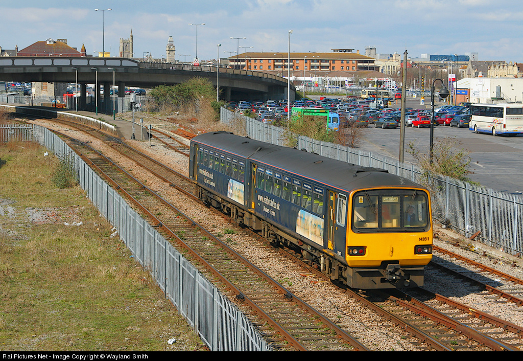 In Visit Bristol advertising livery, 143611 departs from Weston super Mare bound for Cardiff Central via quite appropriately Bristol.