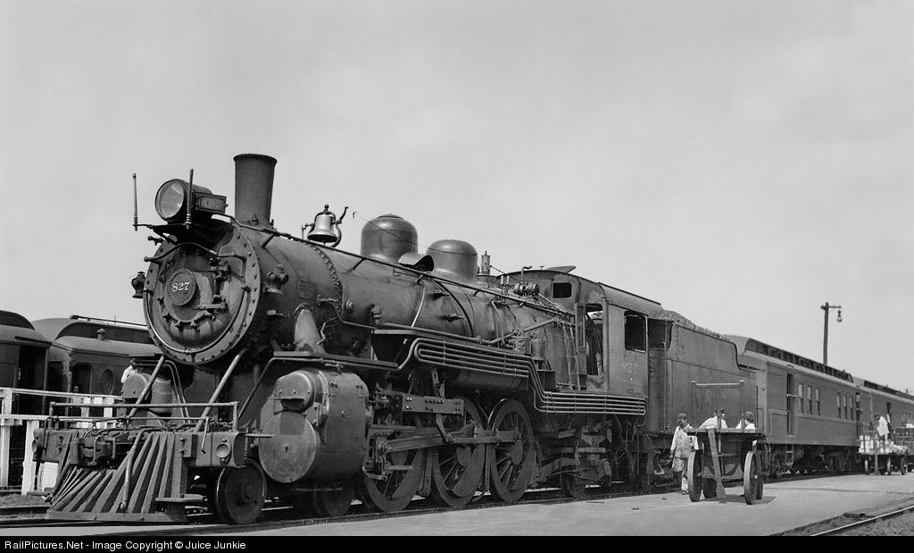 It's train time in Savannah, Georgia. On a sunny day in March, 1922, The Florida Cuba Special has just arrived with engineer J. A. Preacher at the throttle of Seaboard Air Line 4-6-2 827. After the considerable head end business is taken care of and all the passengers are aboard, two short blasts of the whistle will signal she's on the move again as she heads south to Jacksonville, Florida and points south. Seaboard 4-6-2 827 was one of thirty five P-2 Pacifics built by several builders. They had 69" drivers, 22 x 28 inch cylinders, boiler pressure of 185 lbs and were capable of 30,885 lbs of tractive effort.