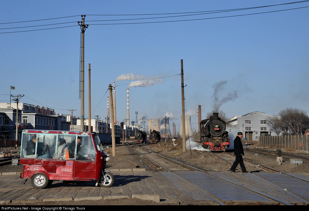 | Every morning 5-6 steam locomotives of the Fuxin Coal mining railway gather near of the stabling points to receive the necessary treatments and wait for their new duties after the crews have changed. © www.tanago-tours.com |
