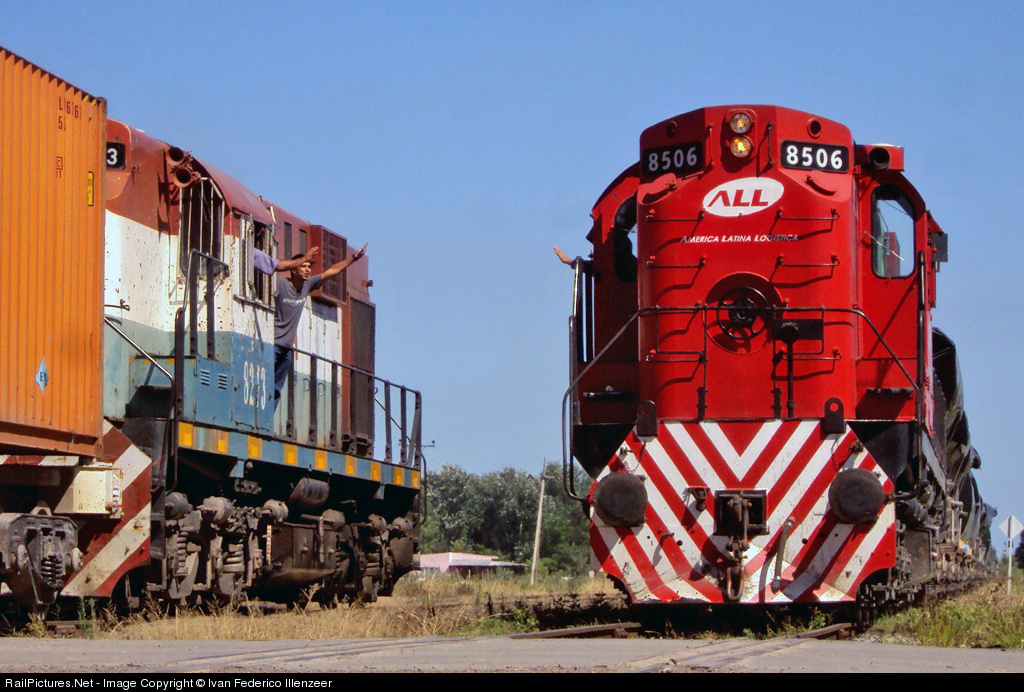 | Bye friend!, they said drivers. ALCO's crossing of different railroads, NCA (8273) and ALL (8506). NCA with containers, ALL with mining hoppers. |