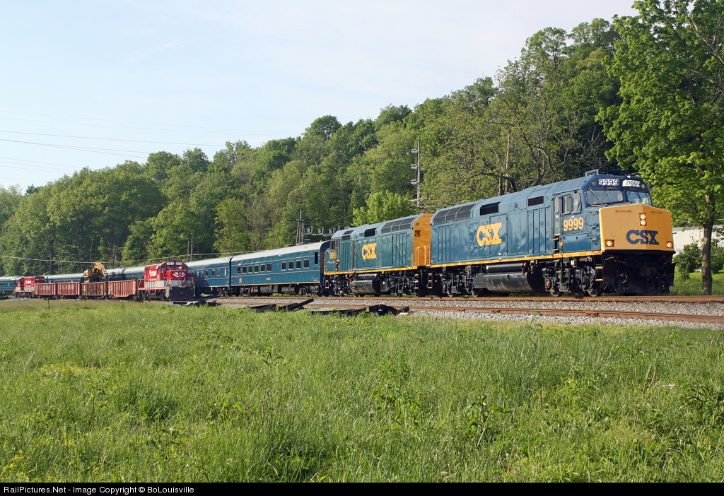 | CSX 9998 leads a passenger train through Frankfort, Ky, heading for the Kentucky Derby in Louisville, Ky. |