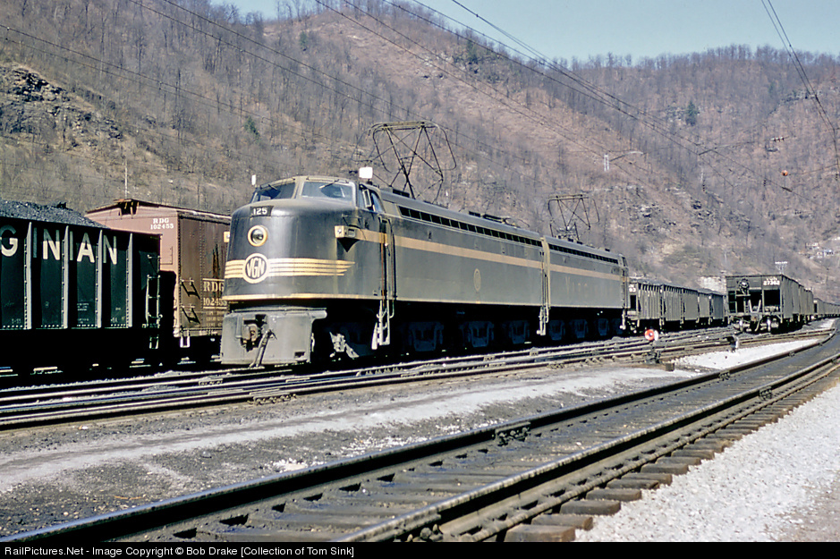 RailPictures.Net Photo: VGN 125 Virginian Railway GE EL-2B at Elmore, West Virginia by Bob Drake [Collection of Tom Sink]