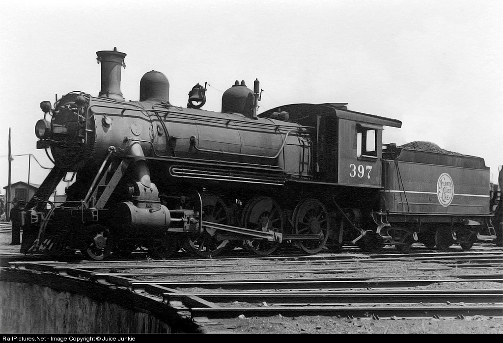 Atlantic Coast Line 4-6-0 Class K-6 397 was built in 1906 by Burnham, Williams & Co. She had 64" drivers, 20 x 26 inch cylinders, boiler pressure of 185 lbs, and produced 25,623 lbs of tractive effort. It was a true mixed-traffic locomotive that was large enough to pull freight trains while able to work the branch line passenger service that didn't require high speeds. Some of these locomotives were still in service in the early 1950s. This image from my collection was taken at the Tampa roundhouse.