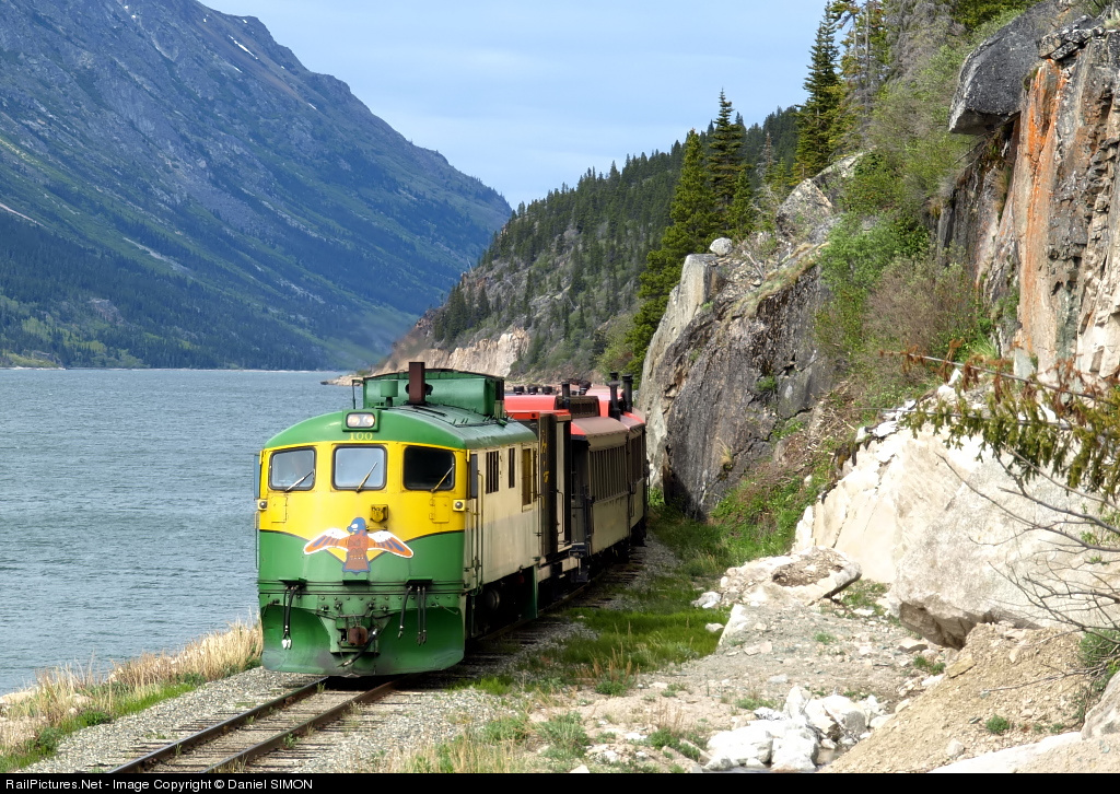 RailPictures.Net Photo: WPY 100 White Pass & Yukon Route GE 90 Class at Between Carcross and Bennett, British Columbia, Canada by Daniel SIMON