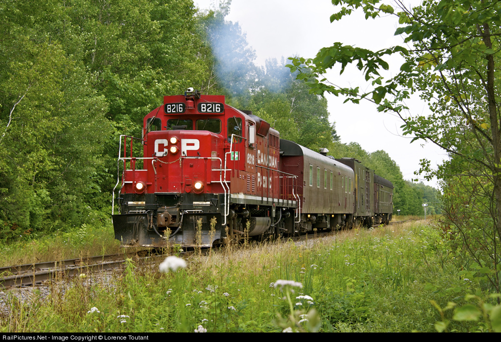 Once a year, Canadian Pacific Track Evaluation Train inspect all Quebec Gatineau trackage. Pictured here, at the junction point between CP and QG on the Lachute subdivision; in less than 100 feet, the westbound train will enter on the QG part of the subdivision for a run to Gatineau, Qc.