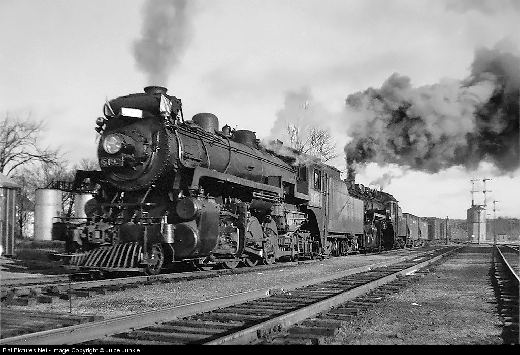 Canadian Pacific 2-8-2 5192 was one of 95 P1b Class locomotives built by Montreal Locomotive Works in 1913. They were rebuilt to class P1-e in 1926. They had 63" drivers, 23 x 32 inch cylinders, boiler pressure of 190 lbs, and could produce up to 43,395 lbs of tractive effort. These engines were used for slow and fast freight as well as for passenger service and served until the end of steam. This picture from my collection shows CP 5192 running extra at an unknown location. The enclosed water tank in the background suggests a far north location.