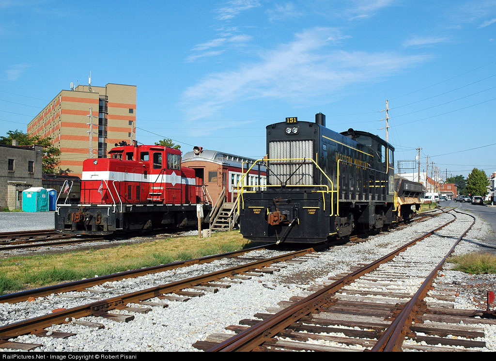 An early morning visit to the M&H yard finds the Western Maryland painted S6 parked at the end of street running next to the days excursion train with 65-tonner #2 leading.