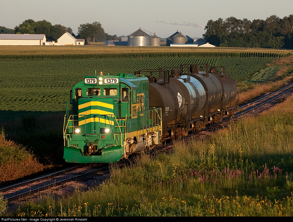 | Just minutes after sunrise, a lone Minnesota Southern geep takes 4 tanks to be interchanged with the Union Pacific at Worthington, MN. Its slow going as the track is not in the greatest shape. |