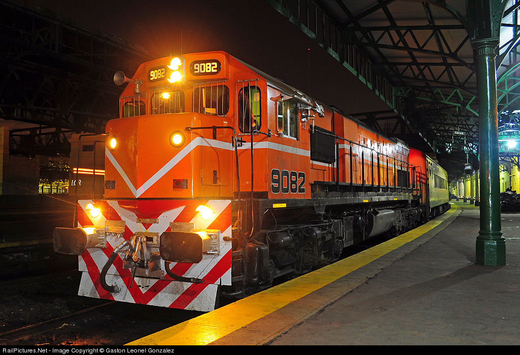 | Locomotive of Ferrobaires looking the new corporate scheme. At the head of the formation to Bahia Blanca, in Plaza Constitucion station. |