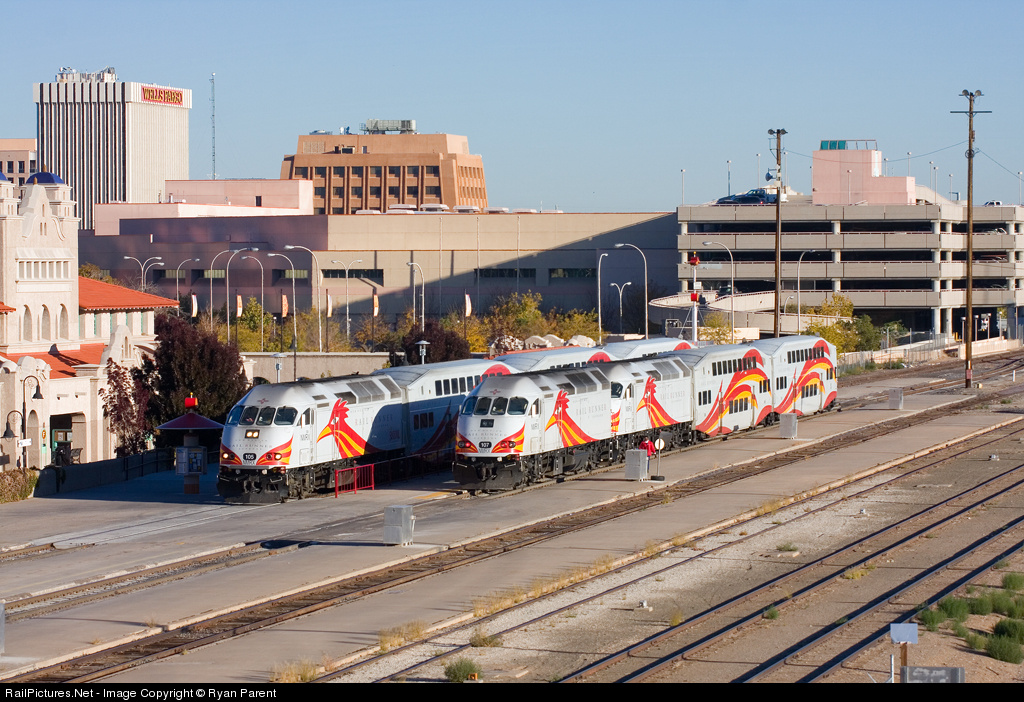 Railrunner's lined up by the Santa Fe depot in Albuquerque.