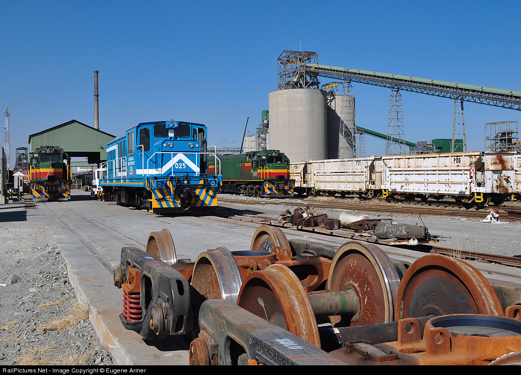 | Two ex- Sheltam C30-EMP's (3004 & 3005) flank African Rail & Traction Services (AR&TS) no. 025 at the Waterval depot of Anglo Platinum's Rustenburg Platinum Mines. The AR&TS loco has since been returned to its owner and by now, probably replaced with something more suitable to the mines operations. |