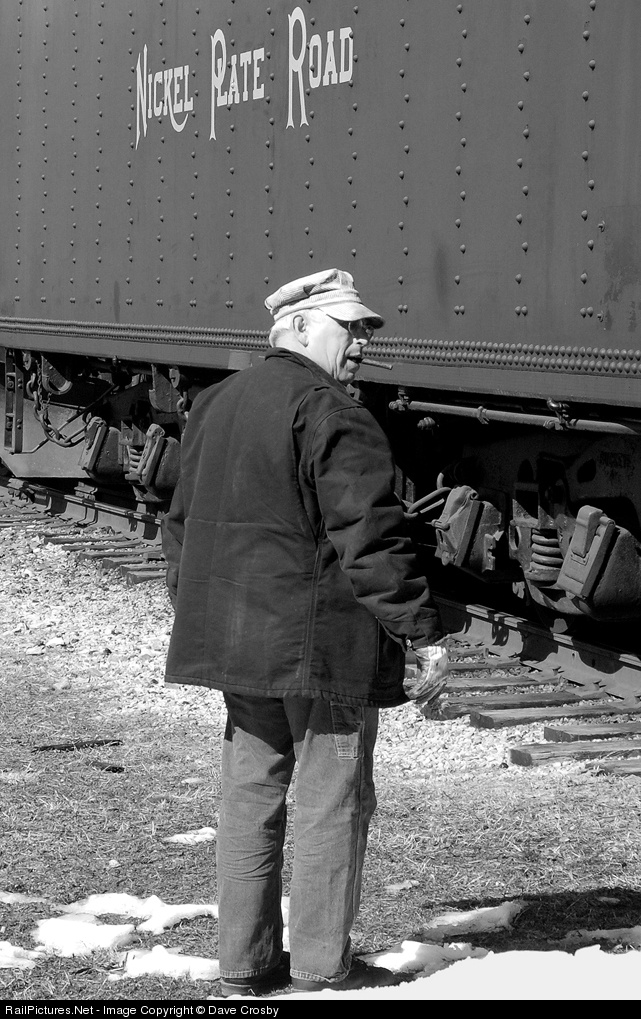 | In a timeless scene, a conductor smokes a cigar while watching a locomotive roll by, even if it is being pushed by a diesel. |