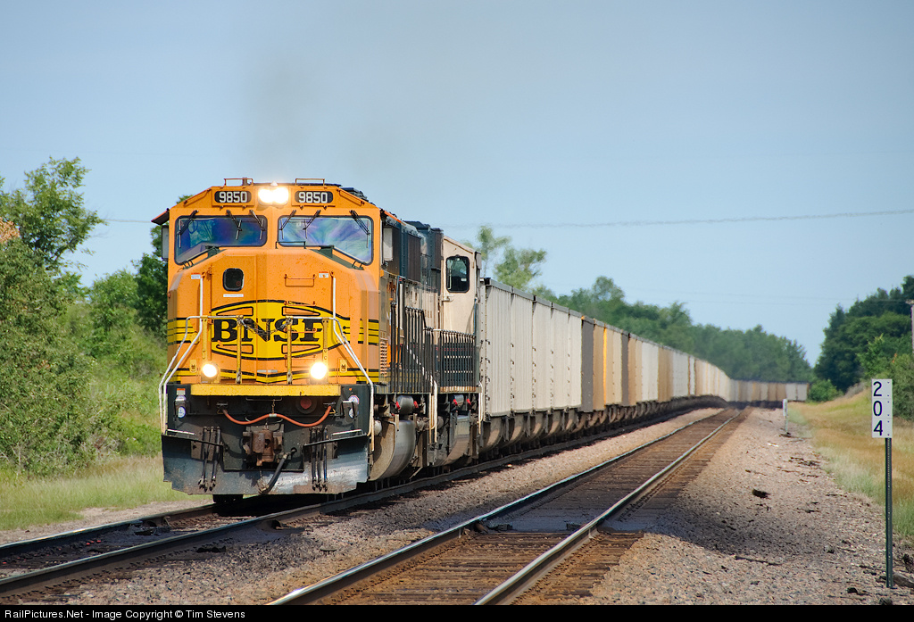 RailPictures.Net Photo: BNSF 9850 Burlington Northern Santa Fe EMD SD70MAC at Frazee, Minnesota by Tim Stevens