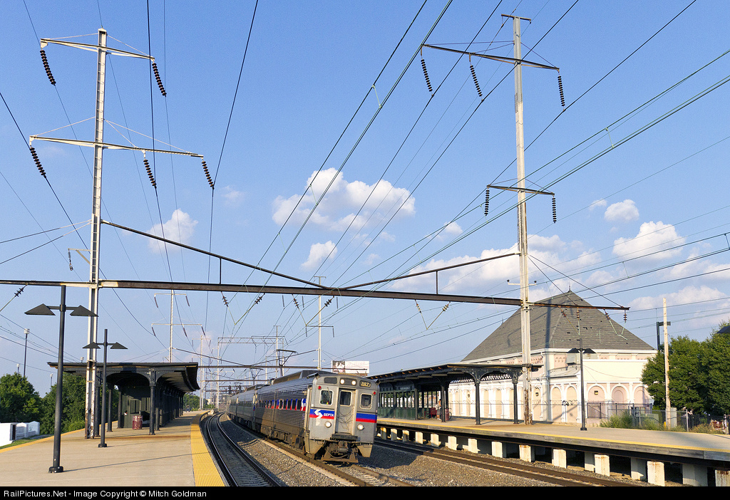 A Silverliner IV passes the through the North Philadelphia Station, once known as Germantown Junction. Both Amtrak and SEPTA use this station, though the station itself (right center seen here) is now occupied by a discount store.