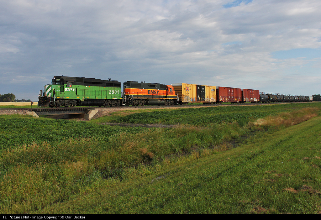 RailPictures.Net Photo: BNSF 2801 BNSF Railway EMD GP39M at Thompson, North Dakota by Carl Becker