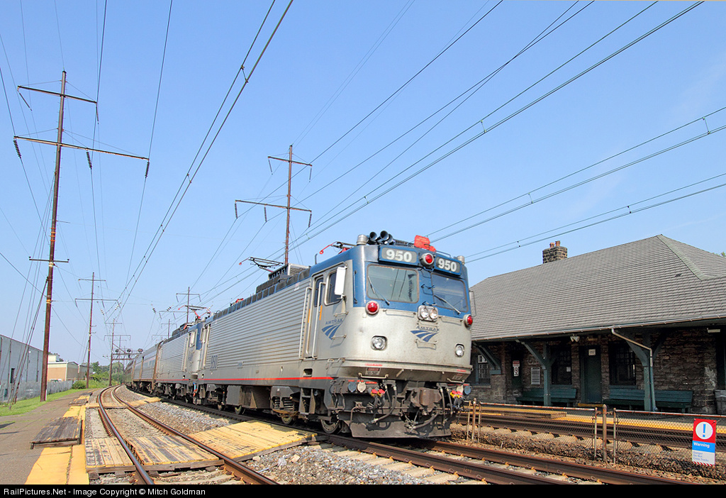 RailPictures.Net Photo: AMTK 950 Amtrak ASEA AEM-7 at Propect Park, Pennsylvania by Mitch Goldman