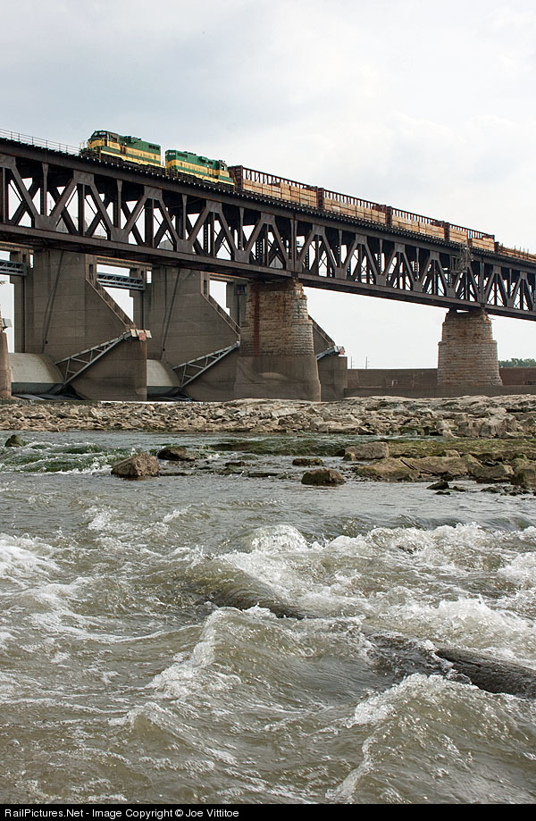 LIRC GP11's lead a cut of cars over the Falls of the Ohio back to their Jeffersonville yard.