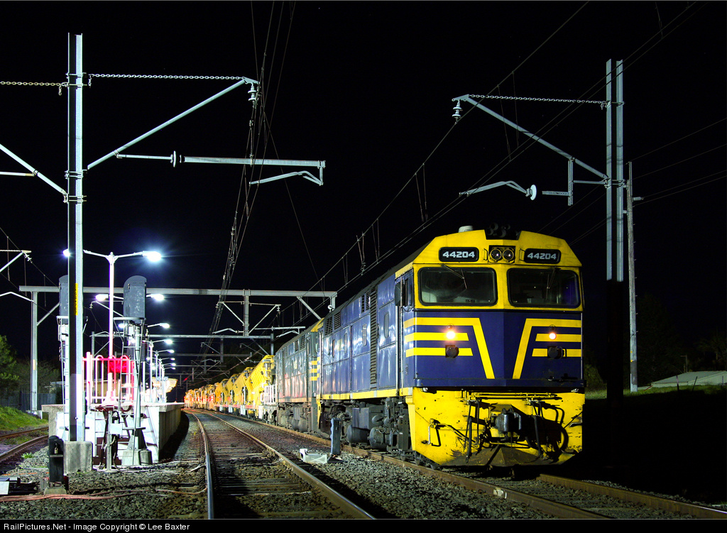 | Loco's 44204 and 44206 are waiting at Dapto station after running around the ballast cleaning train, ready to be piloted to the worksite. |