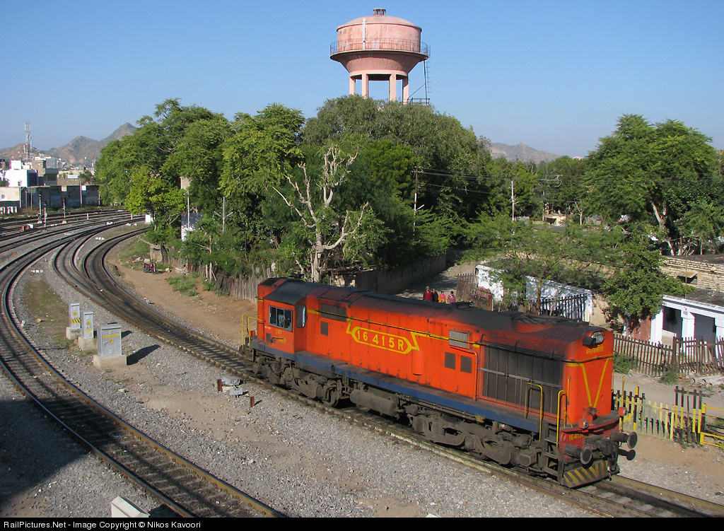 | A IR WDM2 in one of the many different paint schemes runs light at Ajmer Station. Its a small wonder that the individual locomotive sheds have been able to keep their own paint schemes. |