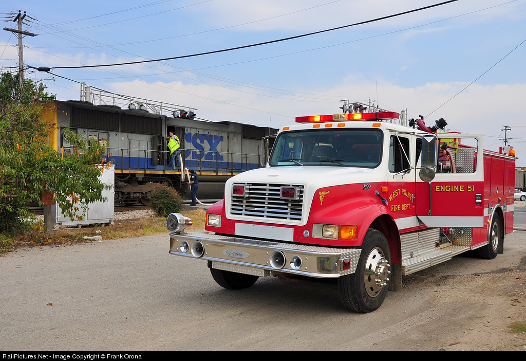 | Have a drink on me With no water in their second unit and not enough power to bring this loaded coal train south, U250 must come to a stop in downtown West Point and get a quick drink from the local Fire Department. This is the second time the 4539 has been seen along the WofA. |