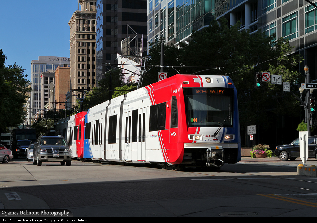 RailPictures.Net Photo: UTA 1104 Utah Transit Authority Siemens S70 LRV at Salt Lake City, Utah by James Belmont