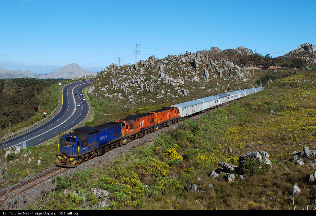 THE PHELOPHEPA IS ON THE MOVE: Transnet sponsor two mobile health clinic trains (PHELOPHEPA means "Good Clean Health" in Sotho) that travel through South Africa and provide extra healthcare for disadvantaged communities. This includes general healthcare, low cost medicines and AIDS councelling & avoidance as well as specialities such as optometry, dentistry and psychology. Routes and schedules are decided on for the year and are advertised to the target communities well in advance. Typically, the train will stand over at a selected station for a week or two while healthcare is dispensed and is then moved to the next place during the weekend so as to be ready on Monday morning for the next group of patients. Here, the train's 18 coaches/700 tonnes need 3 Class 35 diesels to move it over the steeply graded line to the rural center of Caledon, where it will stand over for two weeks. For PHELOPHEPA details go to http//www:transnetfoundation.co.za/Health-Phelophepa.aspx