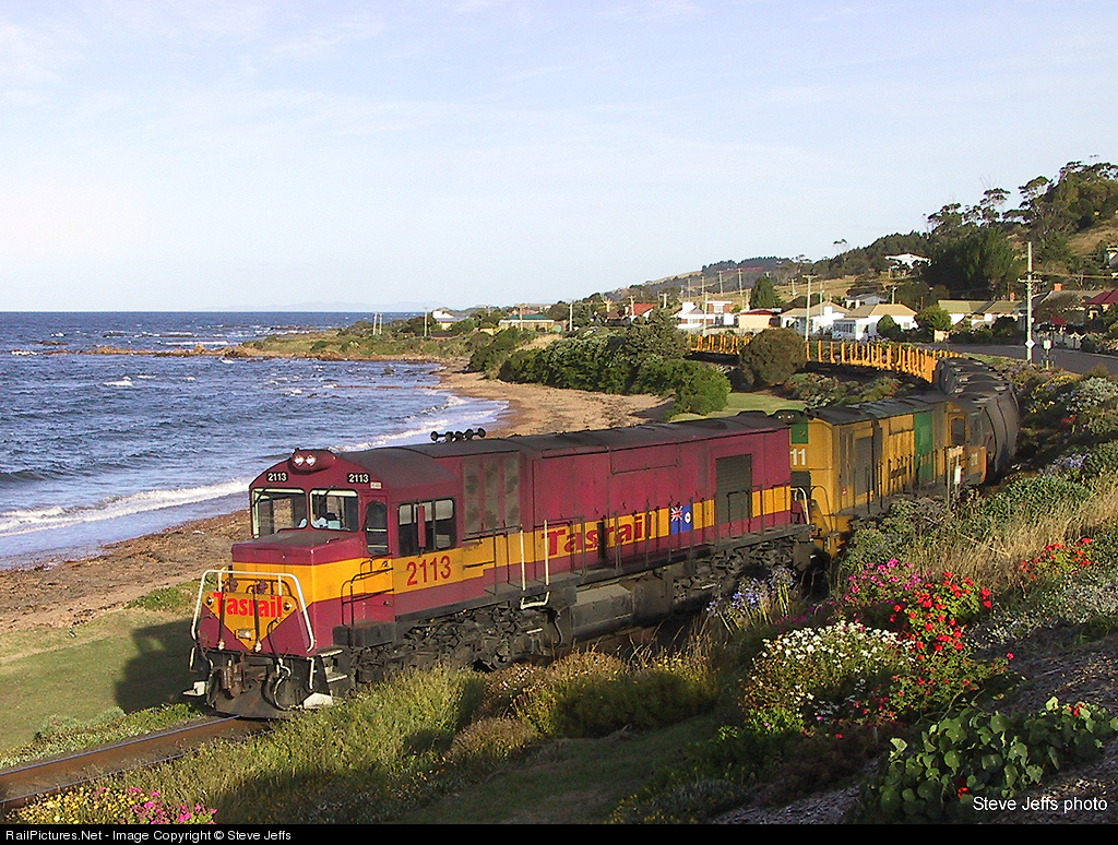| A pair of Z class chortle along the scenic coastline heading to Burnie, Tasmania with train 46. No live penguins train watching that day, just the statues of them around the town. |