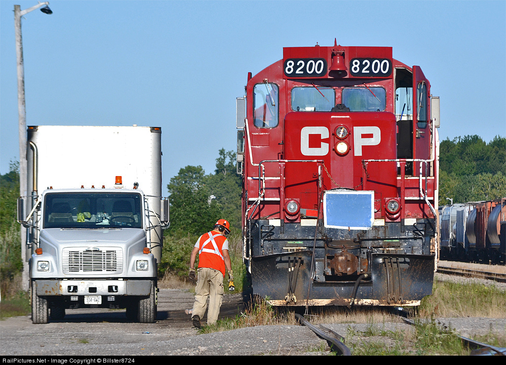 | GP9 class leader 8200 is being checked out at the beginning of the day, in preparation for a hard day's work. Taken with permission by Canadian Pacific Railway. |