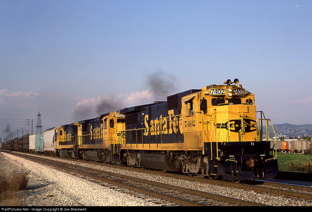 RailPictures.Net Photo: ATSF 7402 Atchison, Topeka & Santa Fe (ATSF) GE B39-8 (Dash 8-39B) at Santa Fe Springs, California by Joe Blackwell
