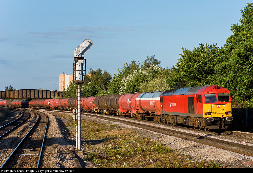 | As the sun drops in the summer sky it picks out the red DB livery wonderfully along with the bright rake of Murco TEA tanks |