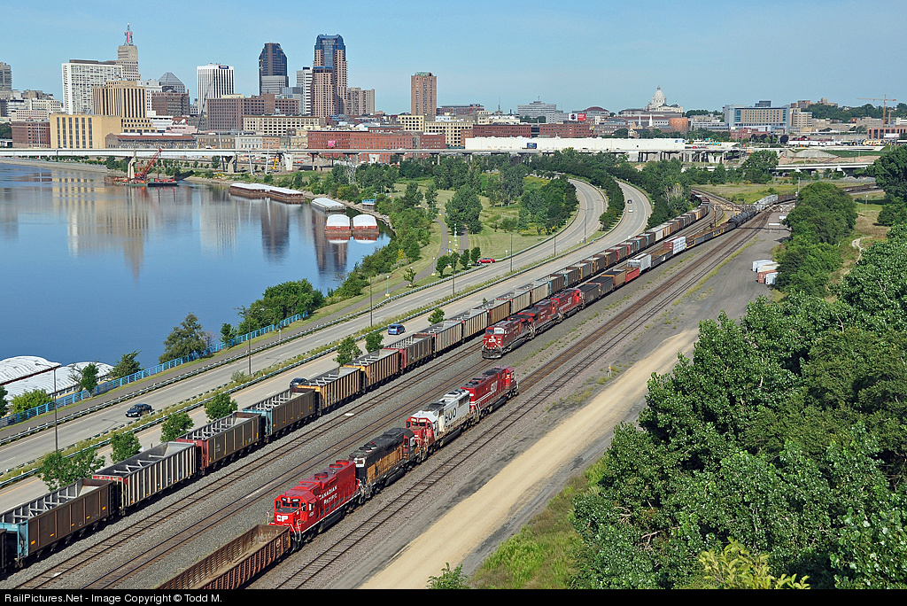 Waking up early and heading to Daytons Bluff just outside downtown St. Paul proved successful on a great late summer morning. Quite the lash-up heading west and the eastbound isn't that bad either.