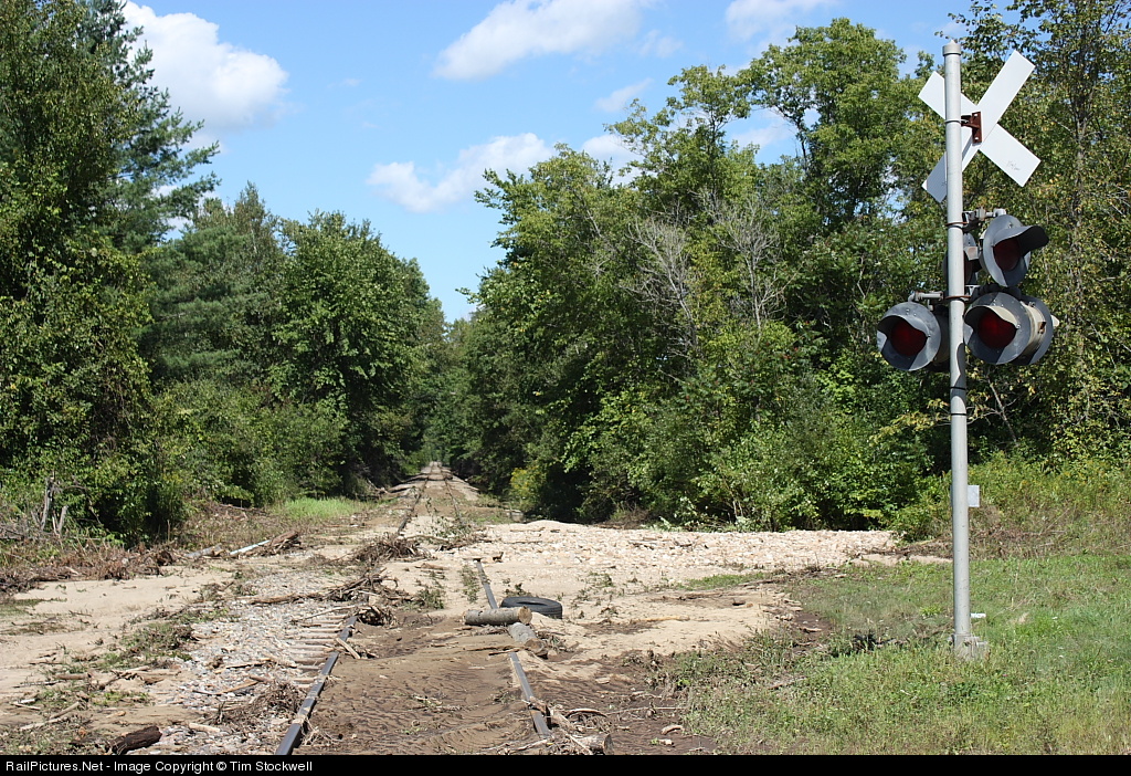 HURRICANE/TROPICAL STORM IRENE AFTERMATH IN VERMONT: Mud and debris clutter the rails at this grade crossing in Sunderland, Vermont along Vermont Railway's Bennington & Rutland Subdivision in wake of Hurricane/Tropical Storm Irene. At the time of this posting, Vermont Rail System had already re-opened its line from Rutland, VT to Whitehall, NY, however this line--along with the Green Mountain Subdivision--were still in need of major repairs.