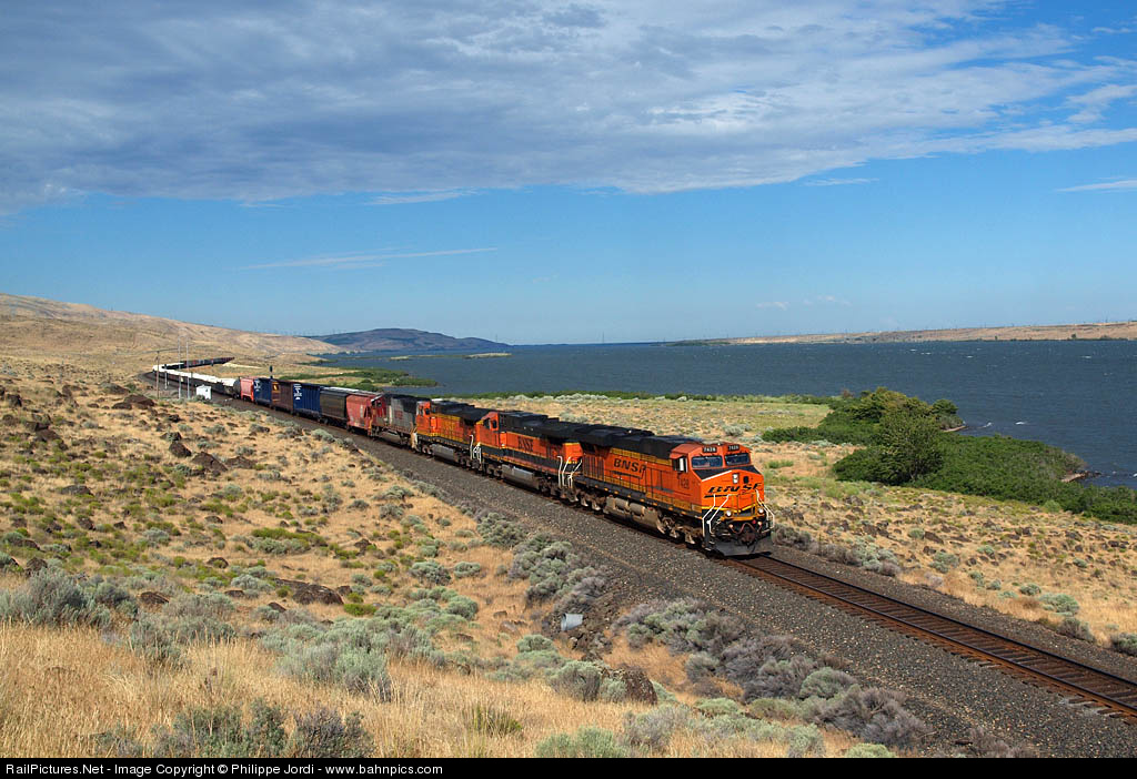 RailPictures.Net Photo: BNSF 7428 BNSF Railway GE ES44DC at Roosevelt, Washington by Philippe Jordi - www.bahnpics.com
