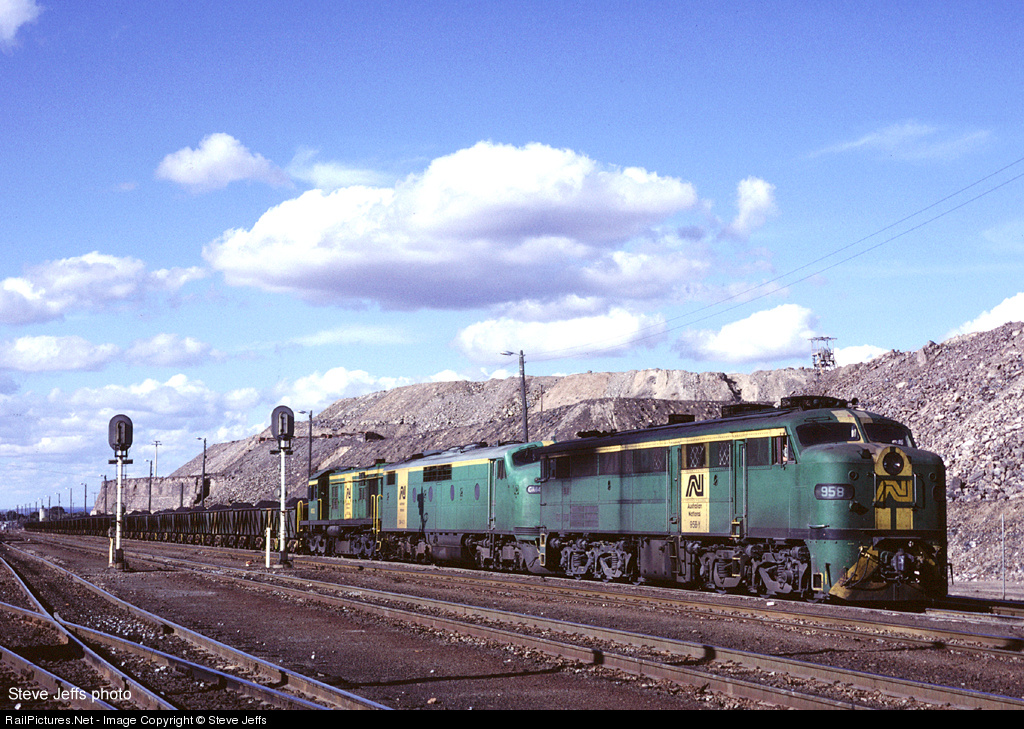 | Aussie National westbound galena ore train 4255 is ready to depart Broken Hill with three venerable beasts. DL500B 958 built 1965 and today preserved by Steamranger, GM42 A16C built 1967 today in service with GWA and 603 DL541 built 1969 today in service with Coote Industrial. |