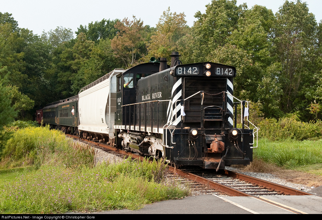 | Black River & Western 8142 heading back to Ringoes, NJ with a mixed train. This train was a special excursion to Three Bridges where the covered hopper was picked up. |