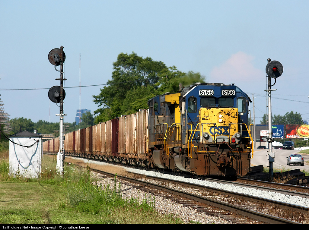 Recently CSX ran a Herzog ballast train up to Grand Rapids to dump new stone for the ROW between Turner St, Sunnyside and Grandville for the massive track rehabilitation taking place on part of the GR Terminal Sub. Here the train, running as Y171, is being shoved east past the Pere Marquette era signals at Ivanrest behind SD40-2 8156 and CW44AC 546, C&O widevision caboose 903101 is on the other end with the conductor. The train would shove all the way to Pleasent St tower then come back west on Main 1, dumping more stone.
