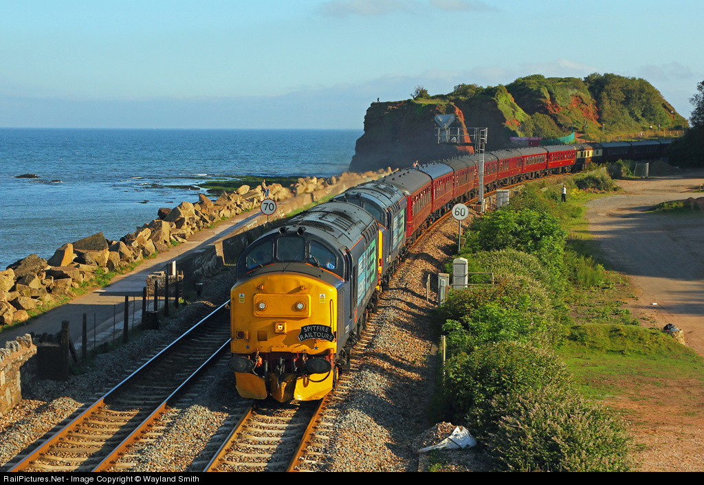 37229 & 37408 power through Dawlish Warren with the return Spitfire Railtours Penzance - Birmingham International. The train in connection with tha Annual Mazey Day in Penzance.