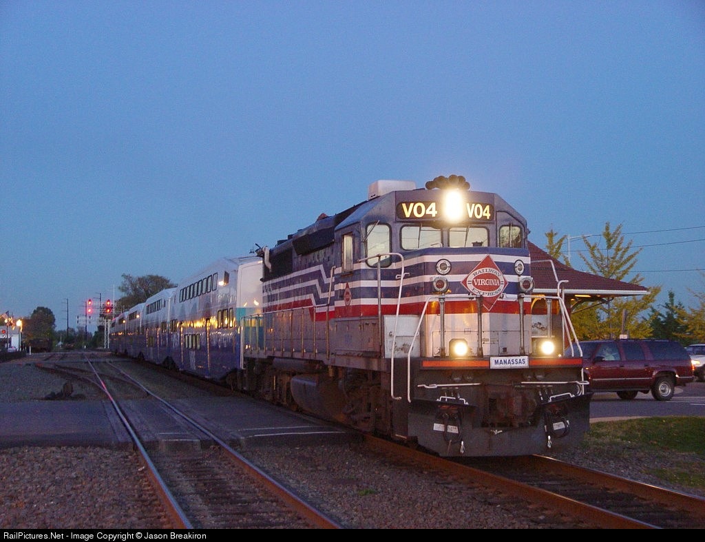 RailPictures.Net Photo: VRE V04 Virginia Rail Express (VRE) EMD RP39-2C at Manassas, Virginia by Jason Breakiron