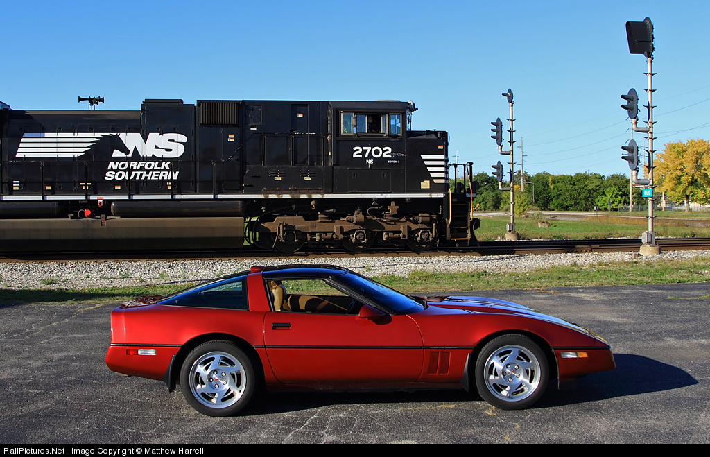 | Beauty and the Beast: NS SD70M-2 2702 looks even more brutish than usual when compared to the smooth, sexy lines of a C4 Chevrolet Corvette. |