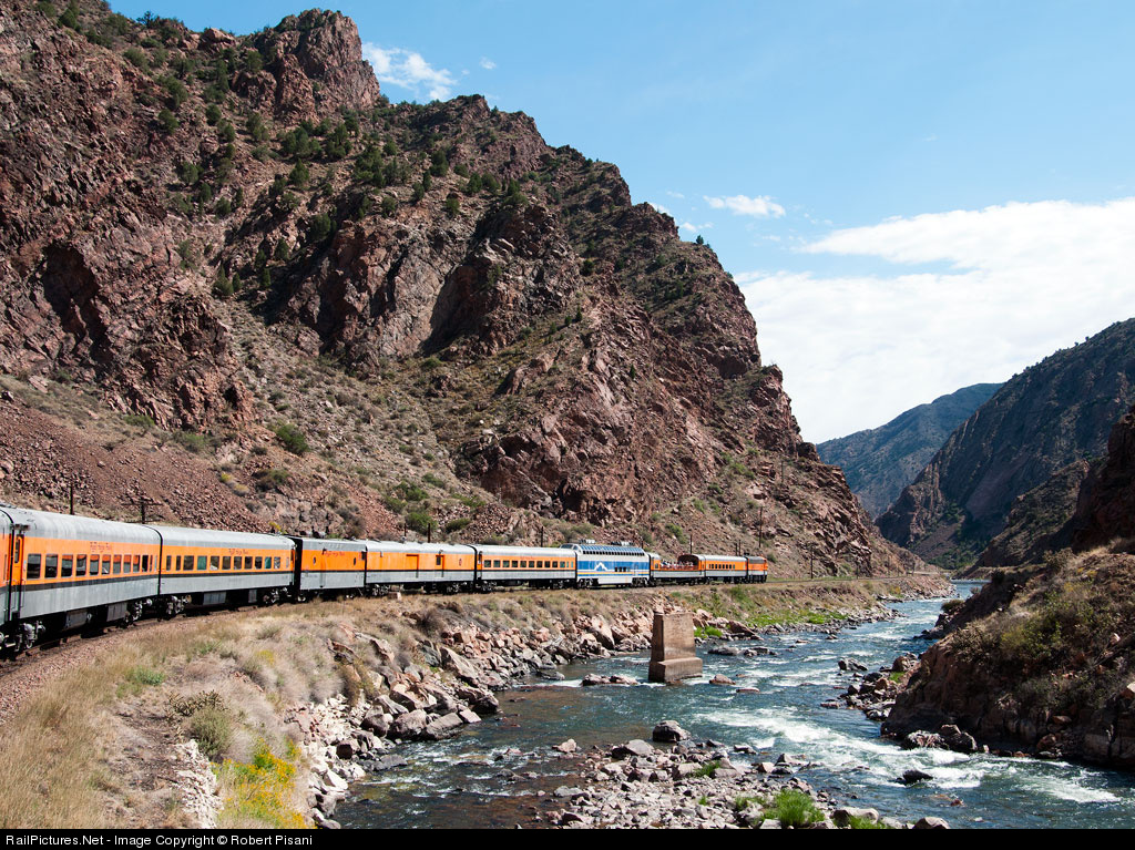 Exiting the gorge on the eastbound return trip to Canon City. This late-season train was well patronized and made for an impressive site snaking through the gorge in a (not quite uniform) pseudo Rio Grande paint scheme.
