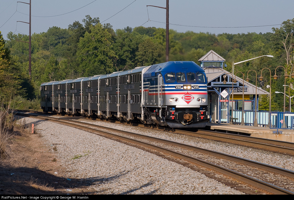 RailPictures.Net Photo: VRE V68 Virginia Rail Express (VRE) MPI MP36PH-3C at Manassas Park, Virginia by George W. Hamlin