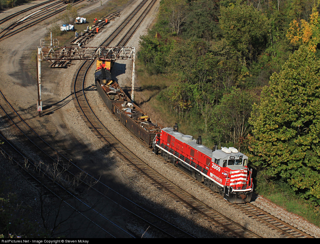 PRLX 2009 rolls past the old receiving yard with its 3 car train that is bound for the class yard which is just around the corner behind me. 2009 is the third genset to be tested in the last year on the URR and there is a rumor to be one more coming for testing, possibly a NRE. After dropping its cars in the class yard the 2009 and caboose will head to XB to switch out shops and take 17 coke racks to Clairton. My self and one other photographer were the only ones to capture these movements on the railroad.