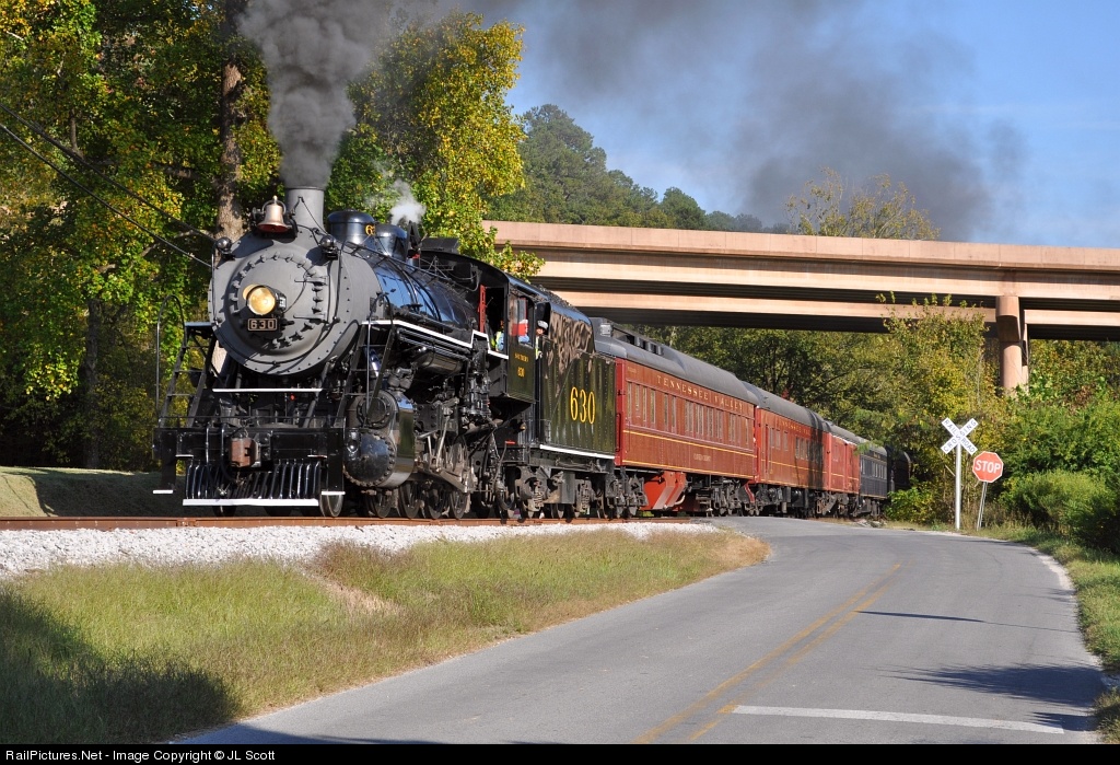 Southern 630 passes under the Chickamauga Battlefield Bypass on her return trip to Chattanooga with a "Summerville Steam Special". One of the great things about these Summerville "turns" is the abundance of wonderful sun angles, even on the northward run during the afternoon.